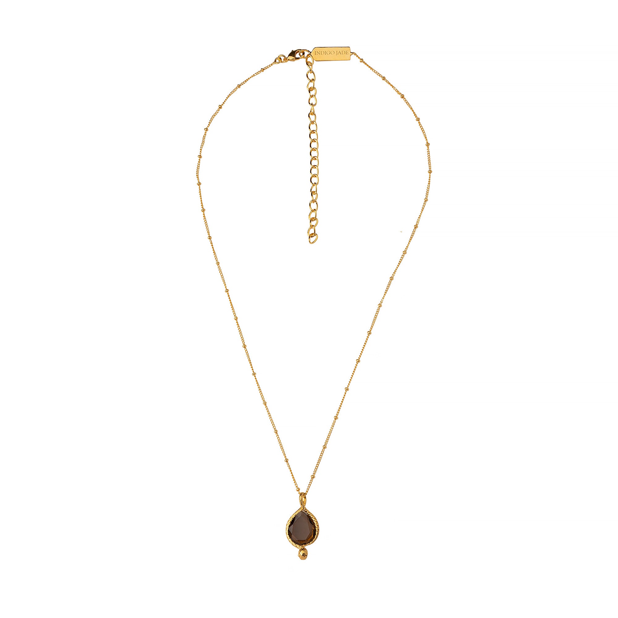 This exquisite piece features a smoky quartz stone, renowned for its grounding and empowering energy, draped with a sculpted serpent that coils elegantly around the pendant. The serpent, a symbol of transformation and awakened feminine energy, weaves together with the magic of Isis to create a talisman of strength, protection, and inner alchemy.